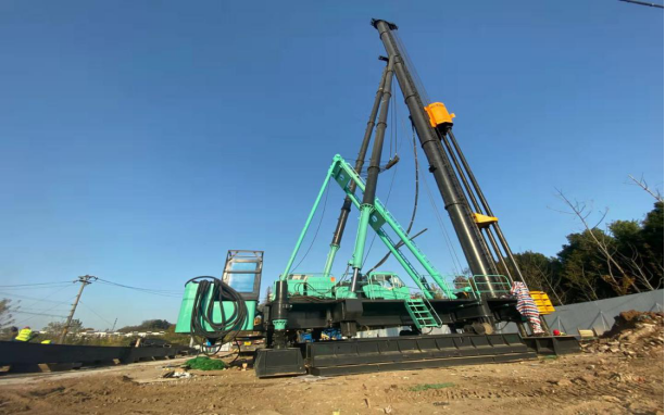 江北河道排口整治工程--施工现场三轴搅拌机